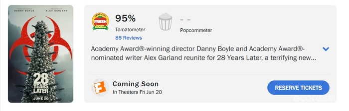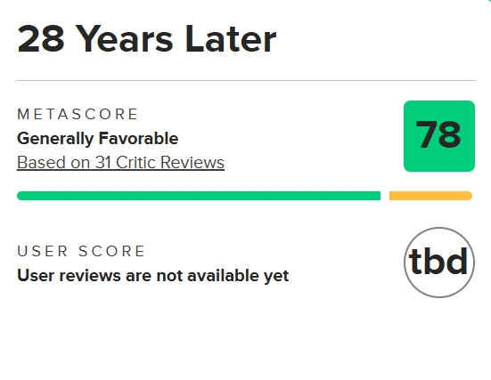 电影《惊变28年》现已开分:M站均分78分,烂番茄新鲜度95%